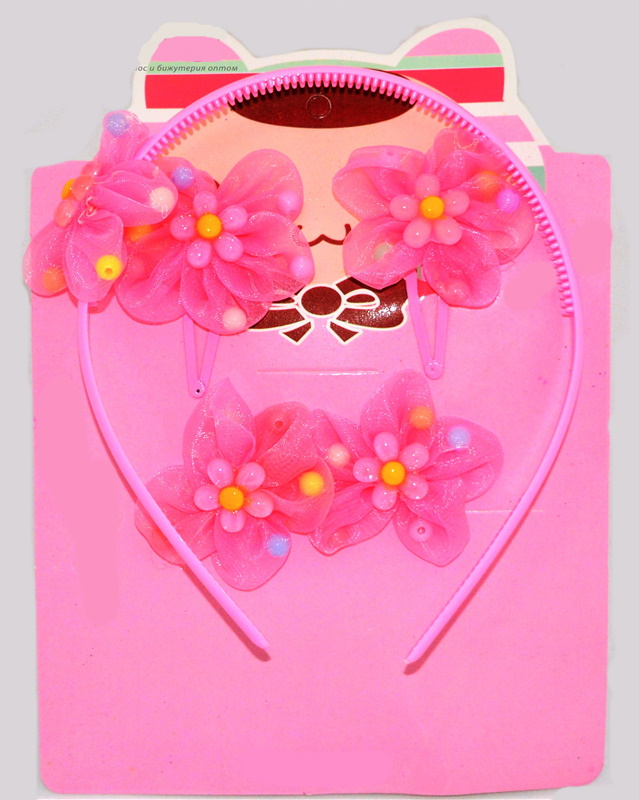 Бантик-цветок на резинке 3 цвета, ЦЕНА ЗА УП. 6ШТ, 3 цвета, в пак. 19*13см (6 шт)