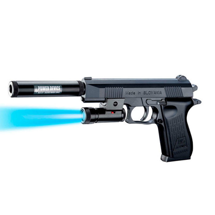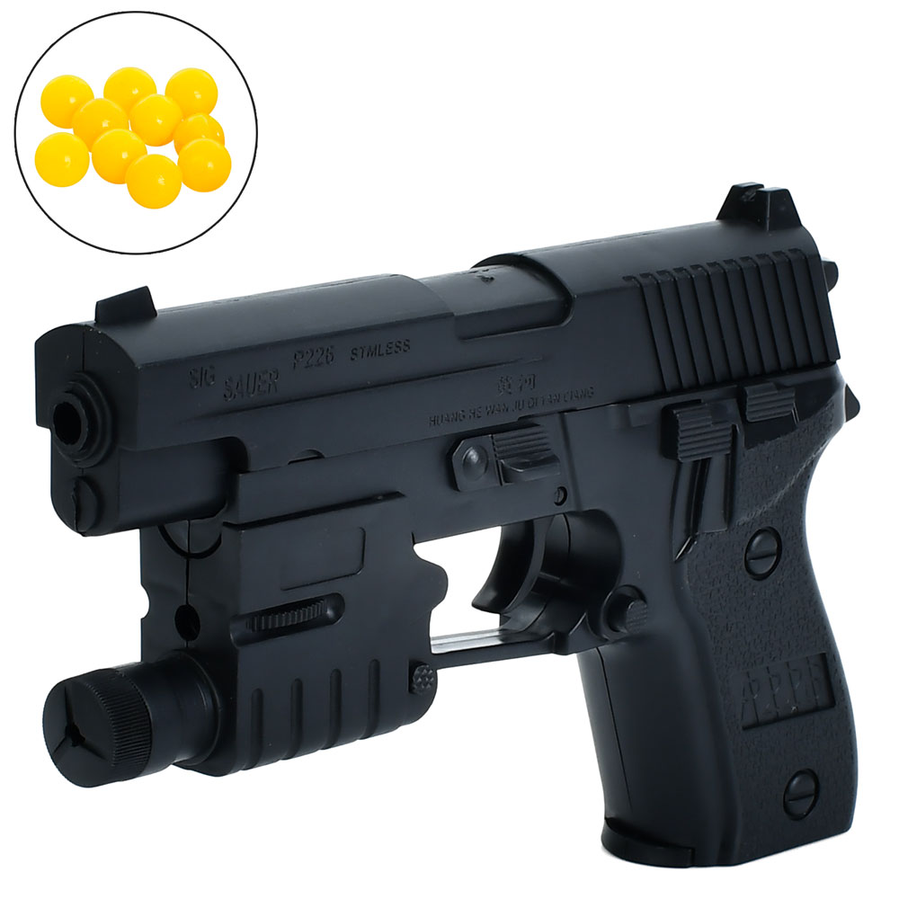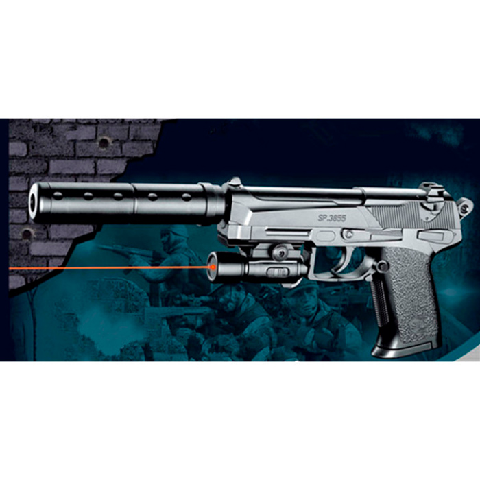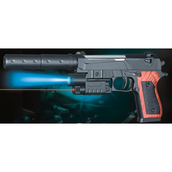 Пистолет 33см, пластиковые пули, лазер, бат(табл), пак. 18,5*24*3,5см (48шт)