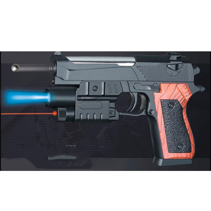 Пистолет 18см, пластиковые пули, лазер, свет, на бат(табл), пак. 15*21*3,5см (72шт)