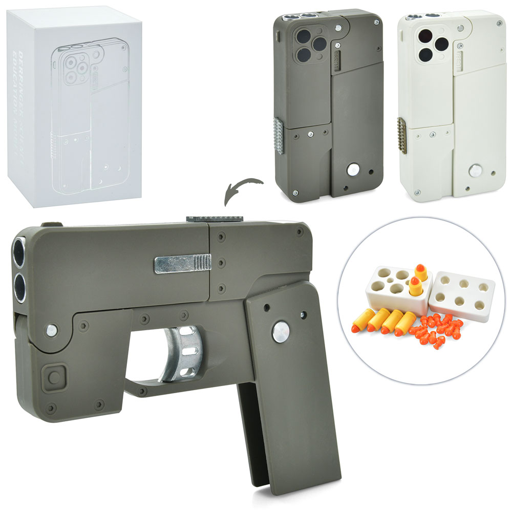 Пистолет 16см, пули (6шт), 2 цвета, в кор. 10,5*16,5*6,5см (12шт)
