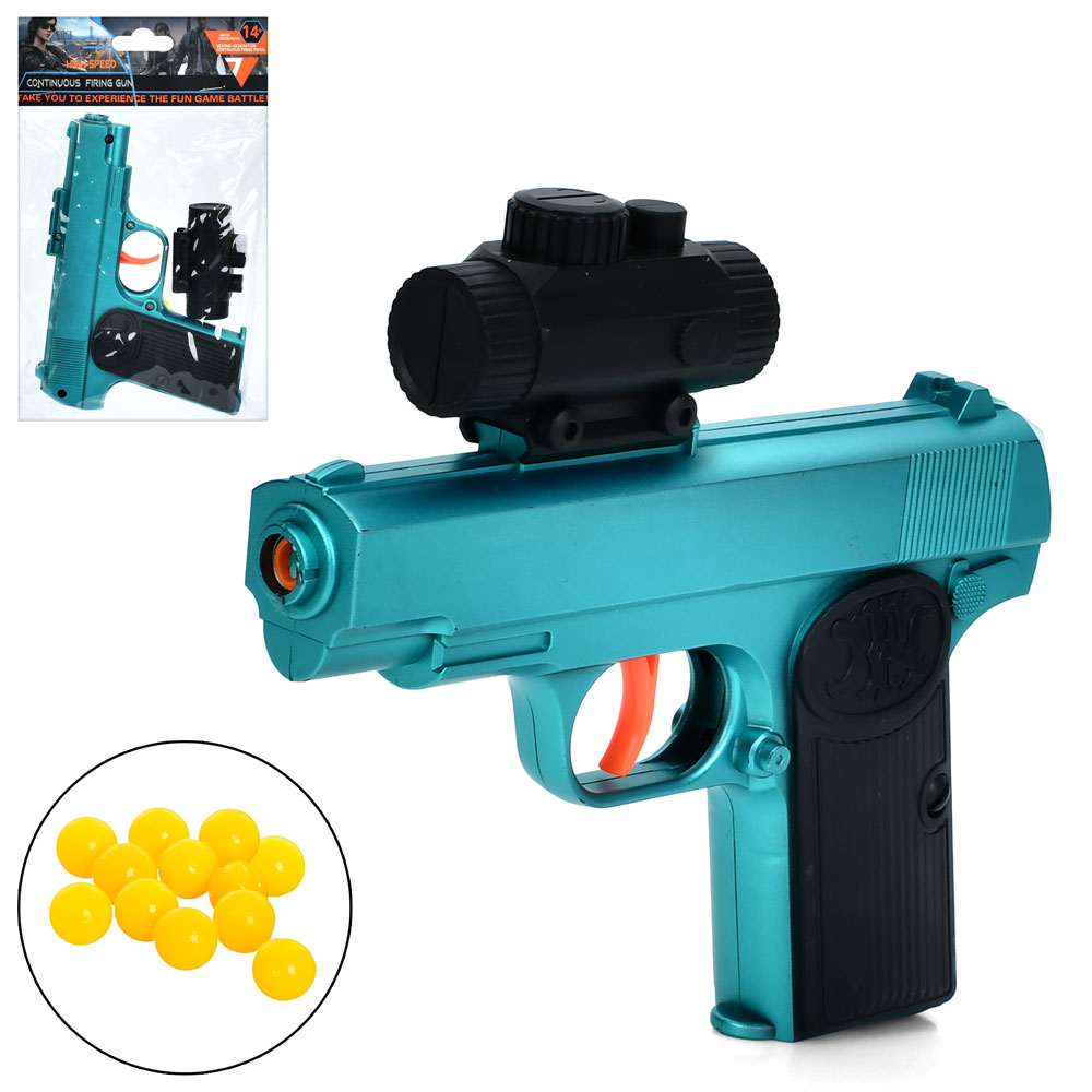 Пистолет 16,5см, пластиковые пули, пак. 14*23*3см (96шт)