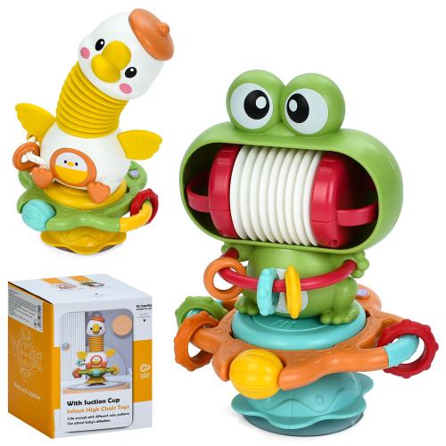 Погремушка 21см, на присоске, текстурные детали, присоска, пищалка, музыка, звук(англ), звуки животных, подвижные детали, 2 вида (лягушка, гусь), на батар., в кор. 13,5*18*12см (36шт)