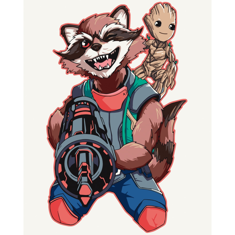 Картина по номерам "Грут и Ракета" лак 40*50см, термопакет, ТМ ART Craft, Украина