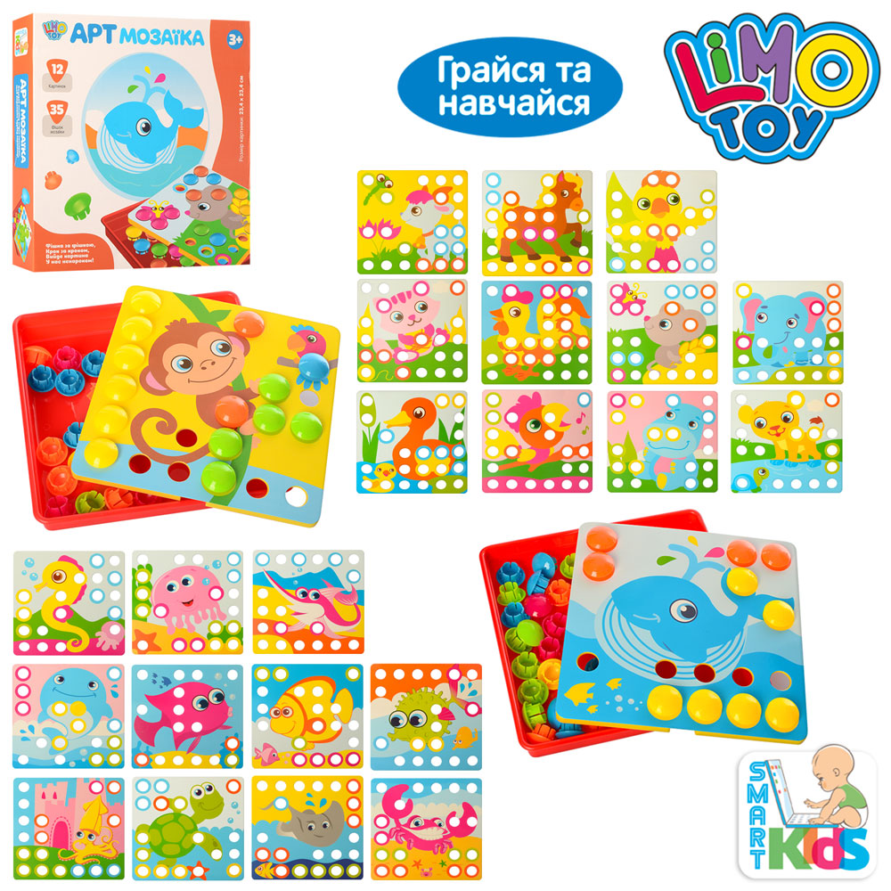 Мозаика 12 картинок, 35 фишек, LIMO TOY, 2 вида, в кор. 26*26*5см (36шт)