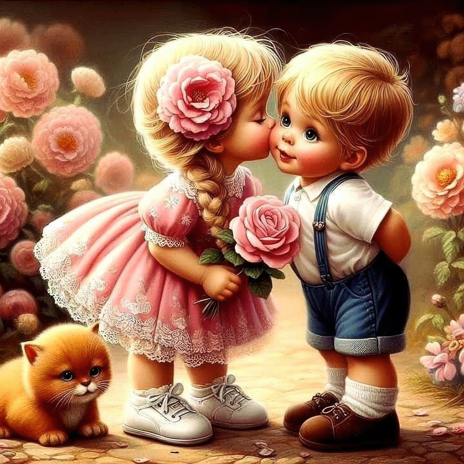 Алмазная мозаика "Поцелуй в цветах", 20*20см, на рамке, в кор. 21*21*2,5см, ТМ Dreamtoys