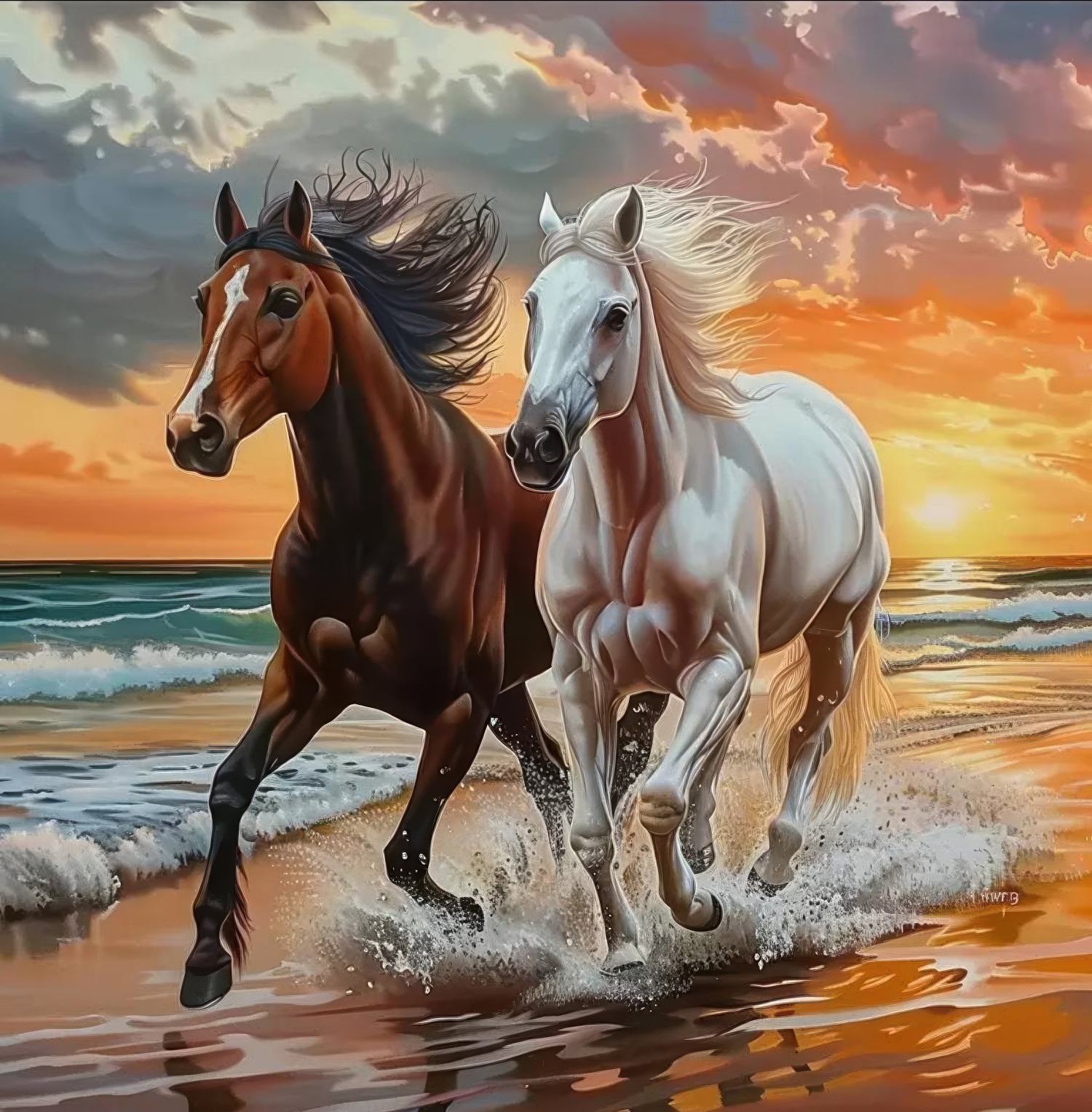 Алмазная мозаика «Пара скакунов», 20*20см, на рамке, в кор. 21*21*2,5см, ТМ Dreamtoys