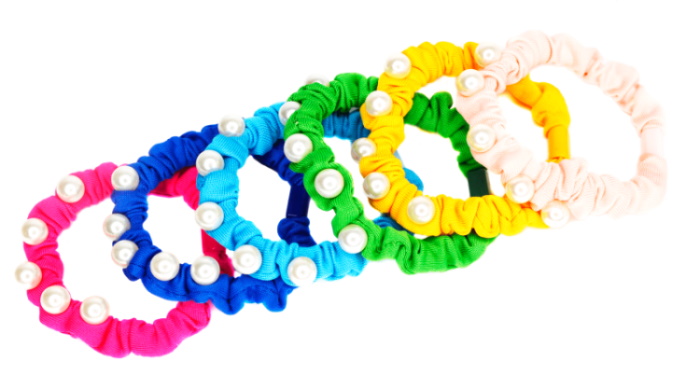 Резинка для волос цветная с бусинами 6,5см, ЦЕНА ЗА УП. 10ШТ, пак. 13*9см