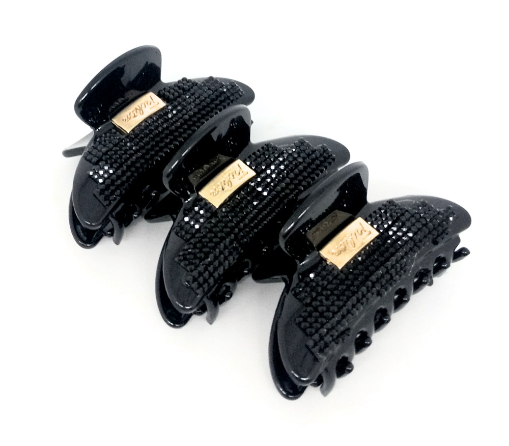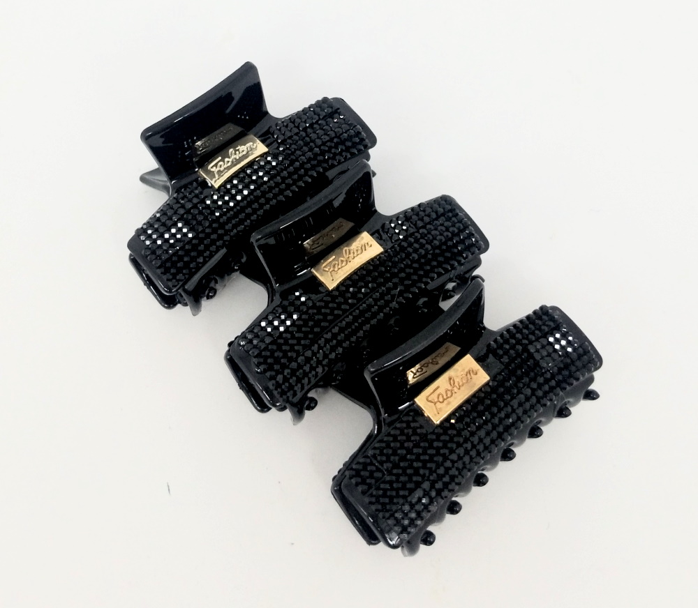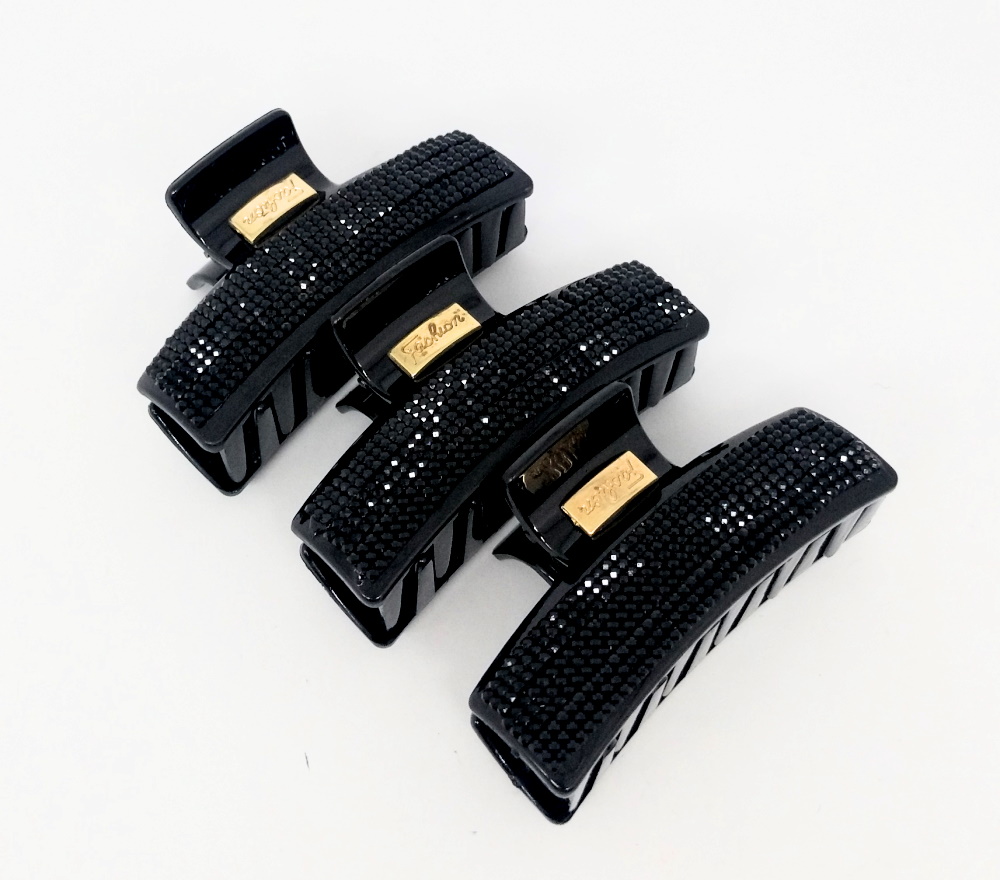 Краб для волос классика черные камни с блеском-1 6*3см, пластиковый, ЦЕНА ЗА 3ШТ в пак.11*7см