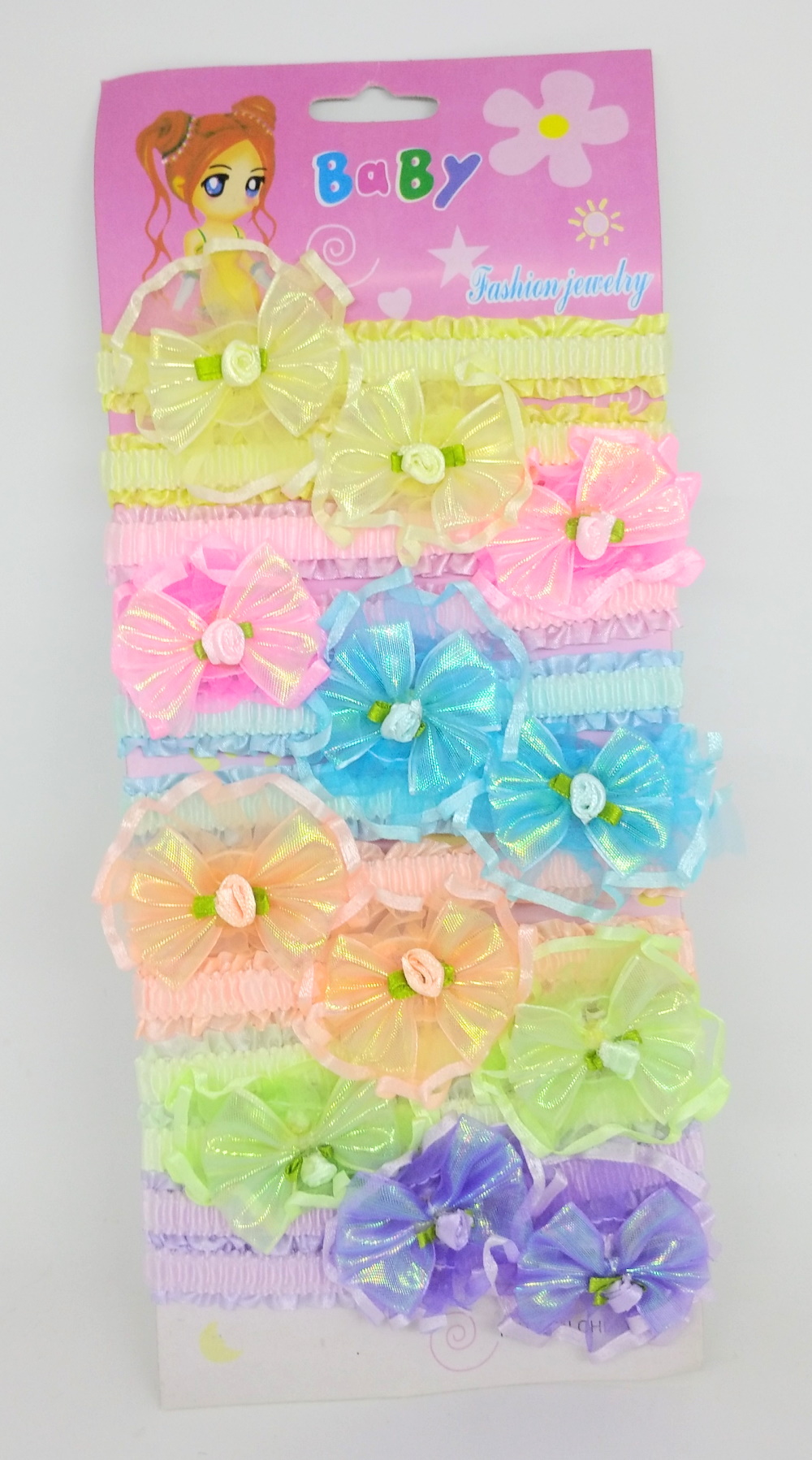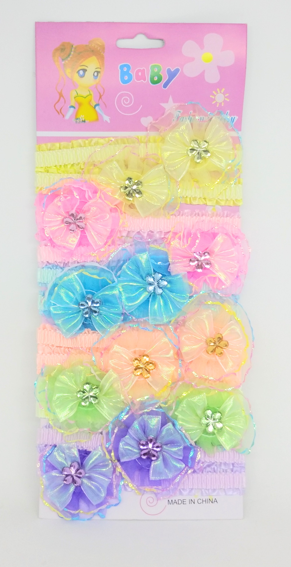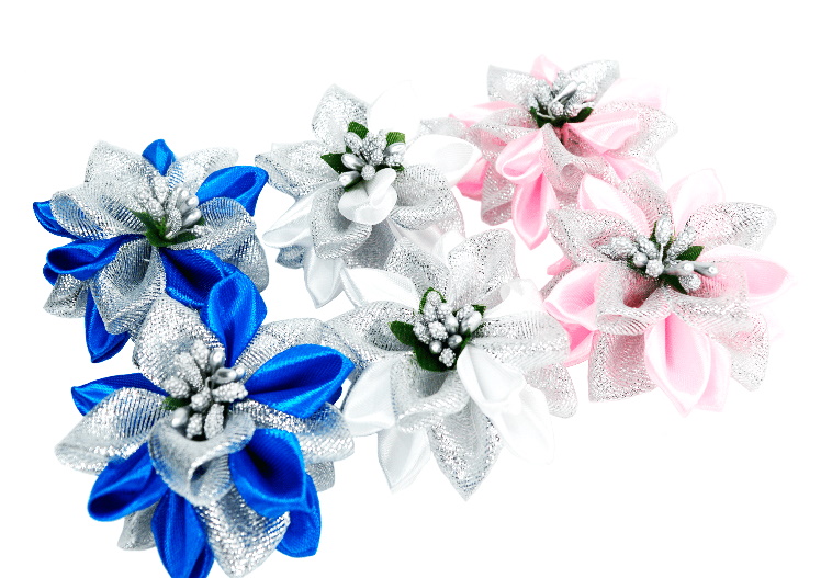 Бантик-цветок на резинке 3 цвета, ЦЕНА ЗА УП. 6ШТ, 3 цвета, в пак. 19*13см (6 шт)