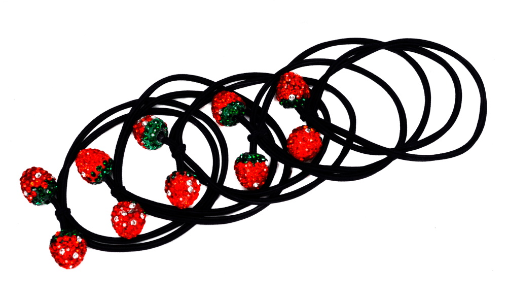 Резинка для волос "Клубнички в камнях", ЦЕНА ЗА УП. 10ШТ, в пак. 10*7см (10 шт)