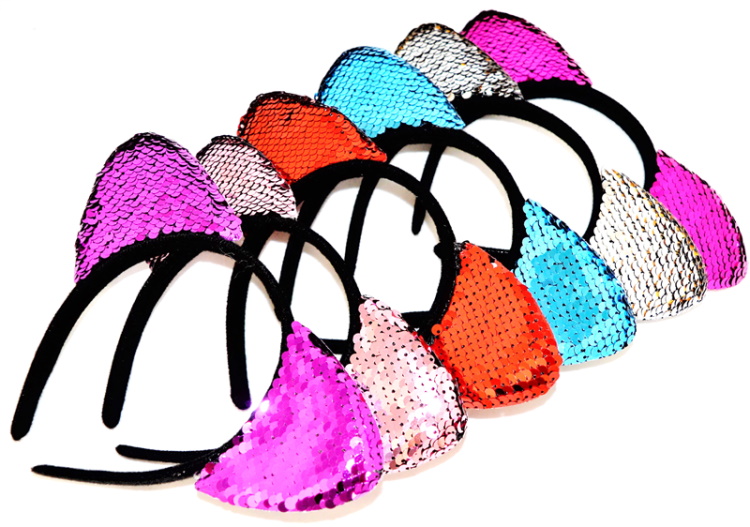 Ободок для волос "ушки в пайетках", ЦЕНА ЗА УП. 6ШТ, в пак. 21*21см (6 шт)