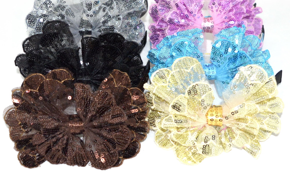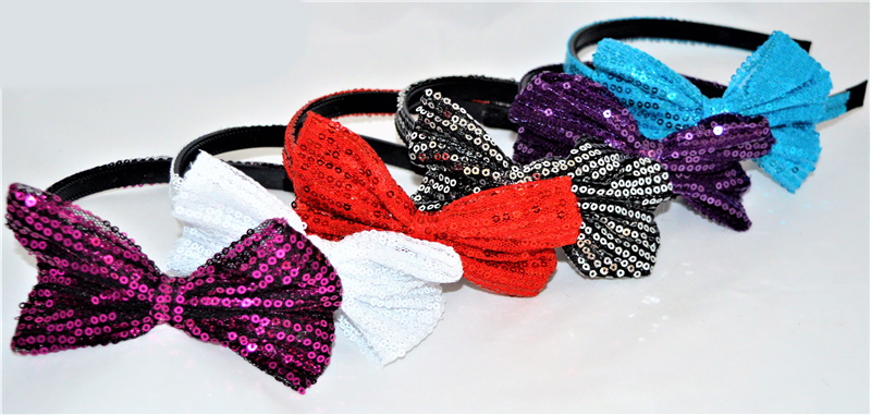 Обруч для волос "Бант в пайетках", ЦЕНА ЗА УП. 6ШТ, пак. 23*16см