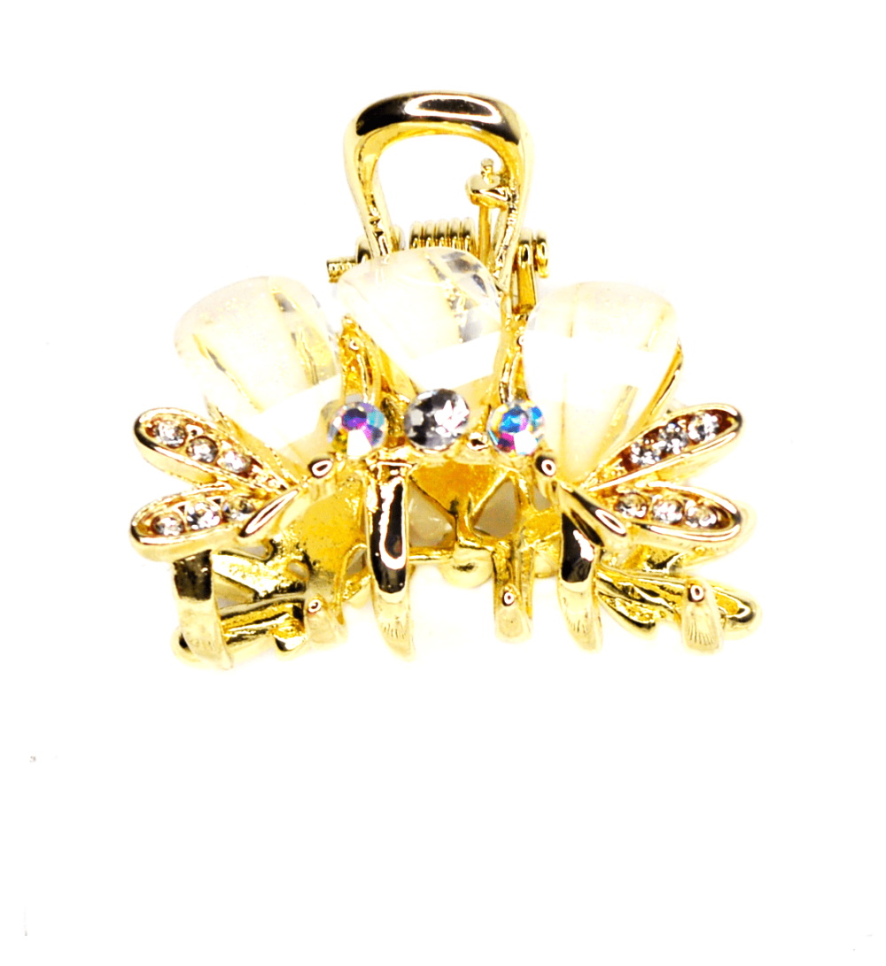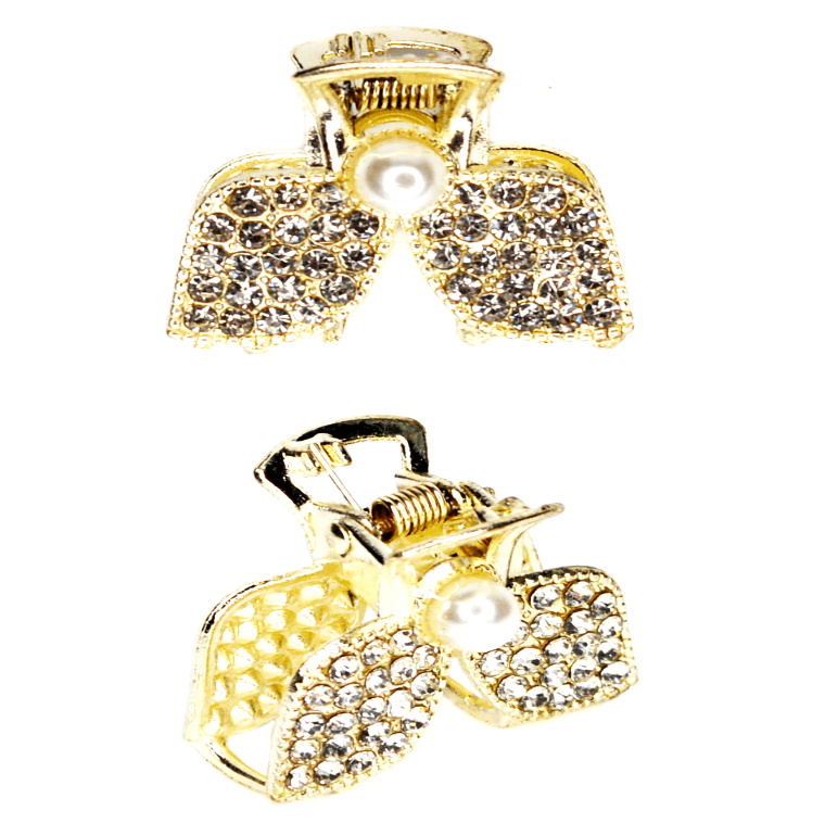 Краб для волос листочек в камнях, металлический, 2*3см, ЦЕНА ЗА 1ШТ, в пак. 5*4см