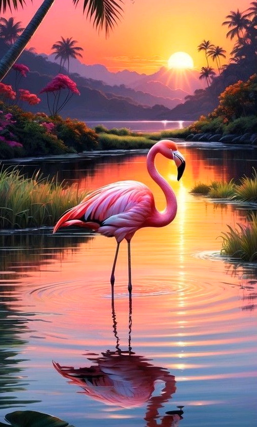 Алмазная мозаика "Фламинго на закате", на подрамнике 30*40см, в кор. 31*41*2,5см, ТМ Dreamtoys