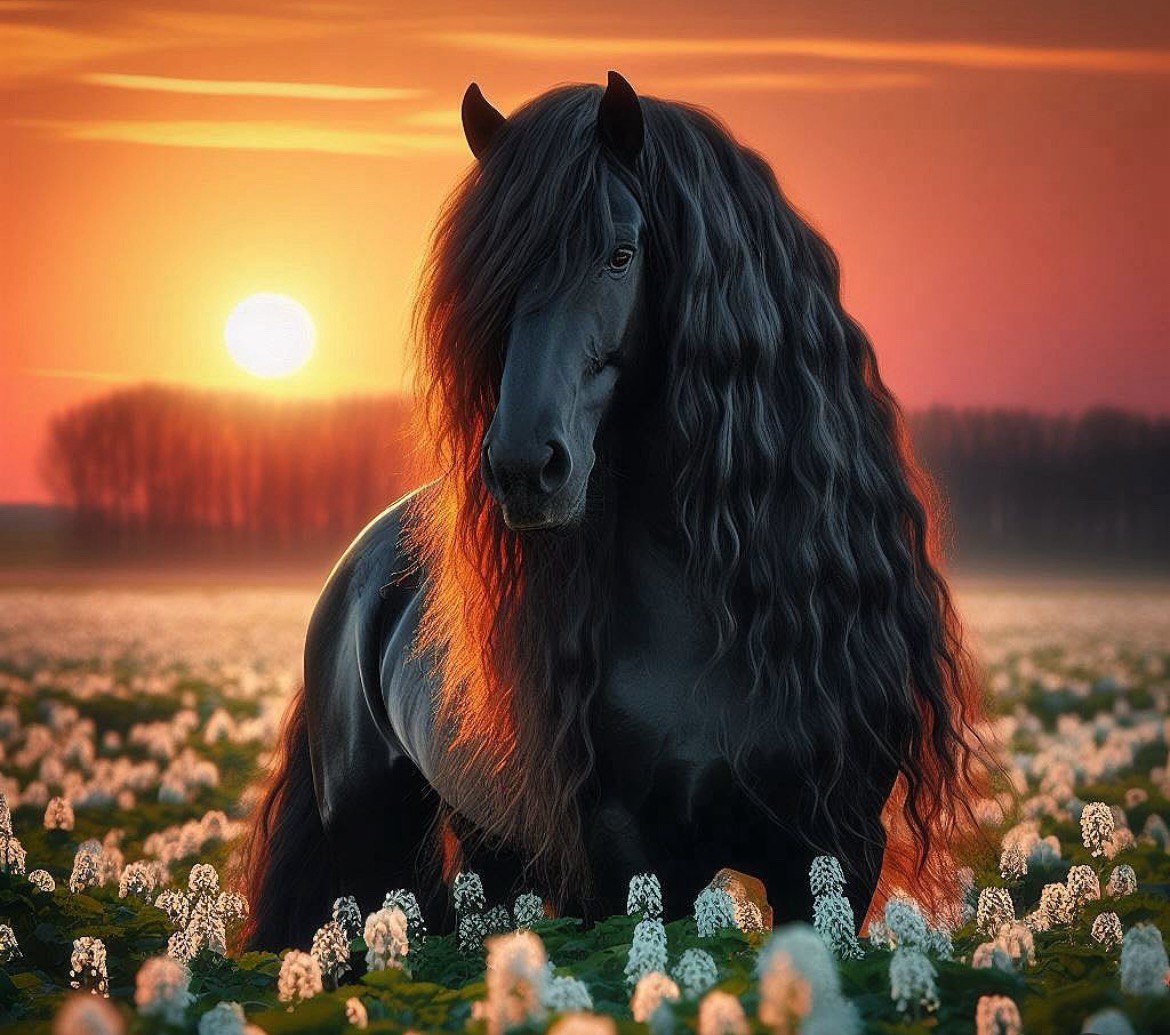 Алмазная мозаика "Черный конь на закате", без подрамника, 30*40см, в кор. 39*8*3см, ТМ Dreamtoys