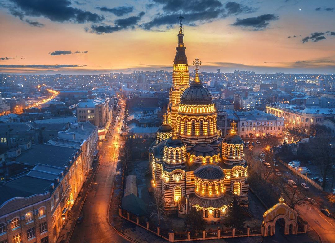 Алмазная мозаика "Закат над Харьковом с куполами", без подрамника, 30*40см, в кор. 39*8*3см, ТМ Dreamtoys