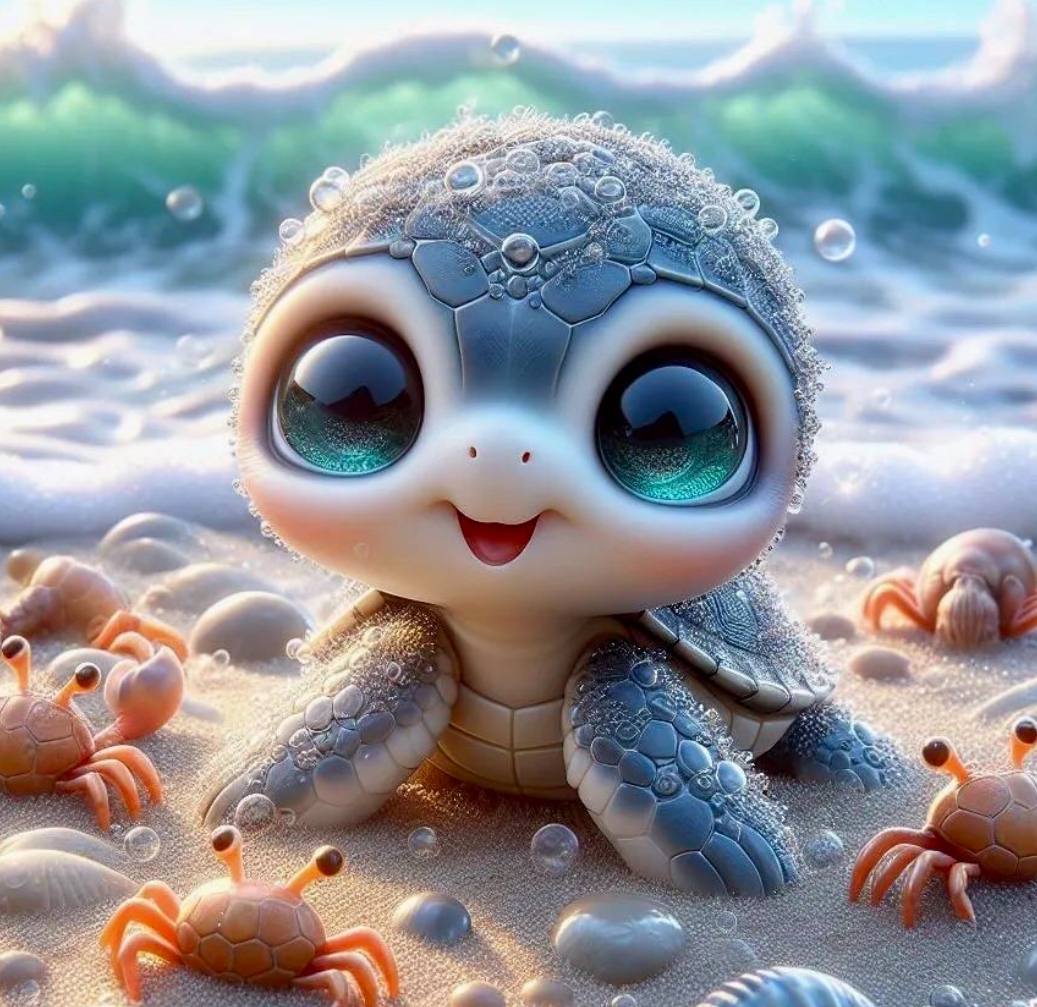 Алмазная мозаика "Милая черепашка на пляже", 20*20см, на рамке, в кор. 21*21*2,5см, ТМ Dreamtoys