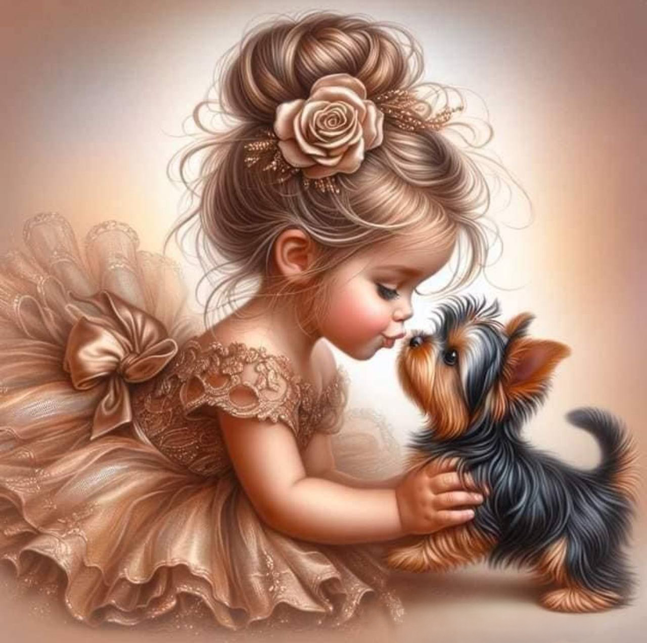 Алмазная мозаика "Девочка и щенок", 20*20см, на рамке, в кор. 21*21*2,5см, ТМ Dreamtoys