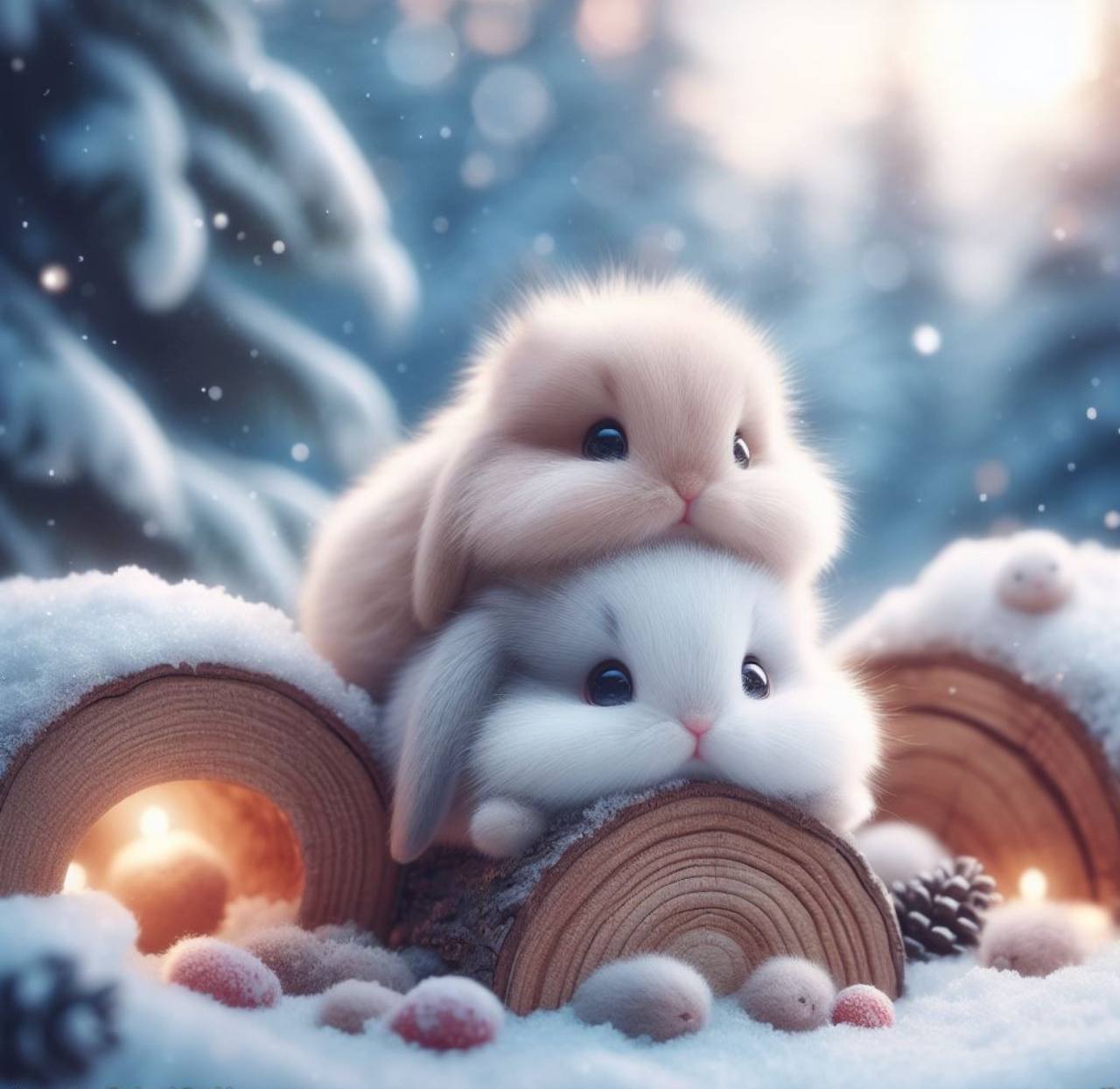 Алмазная мозаика "Зайчики зимой", 20*20см, на рамке, в кор. 21*21*2,5см, ТМ Dreamtoys