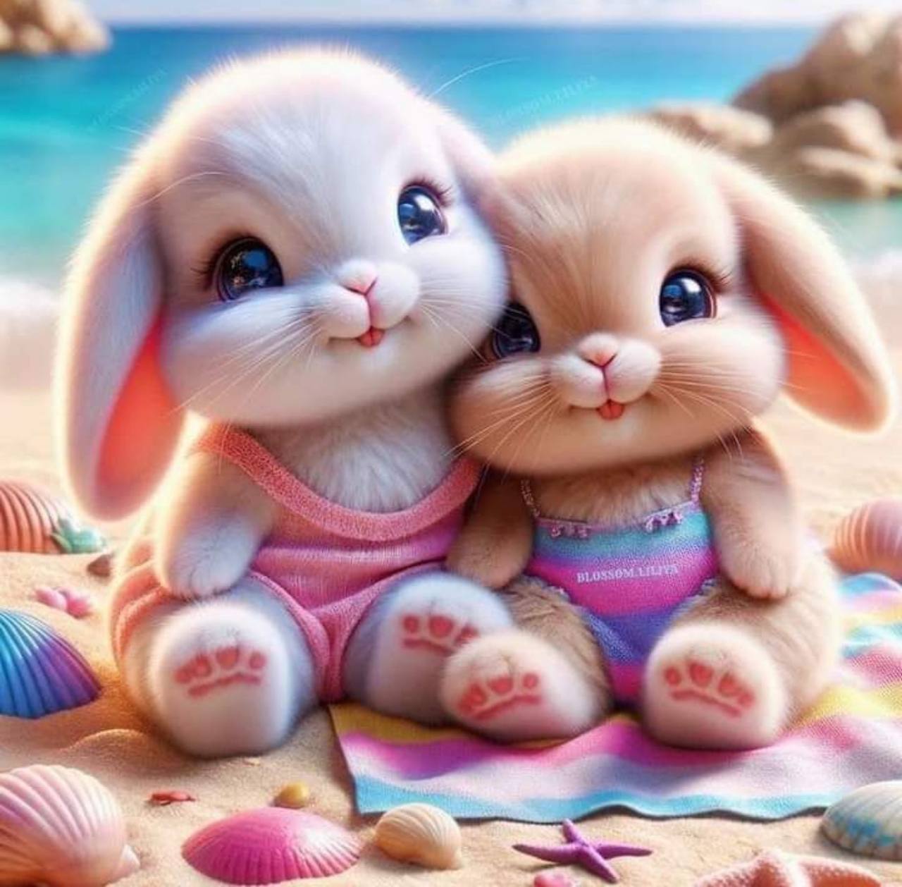 Алмазная мозаика "Зайки на пляже", 20*20см, на рамке, в кор. 21*21*2,5см, ТМ Dreamtoys
