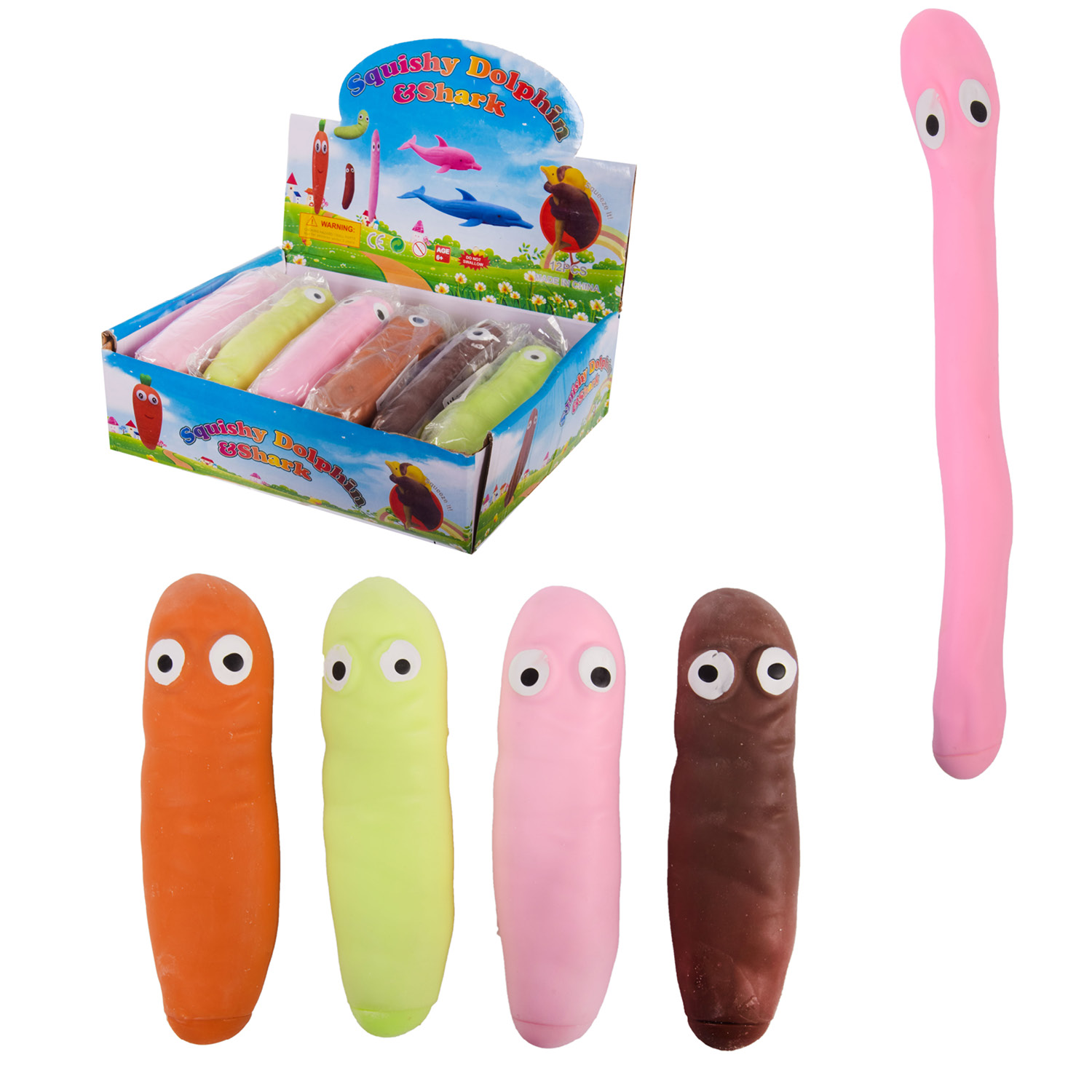 Антистресс-тянучка червячки с песком 13см, ЦЕНА ЗА 1ШТ, В УП. 12ШТ, 4 цвета, дисплей 23*18.5*6.5см (240шт)
