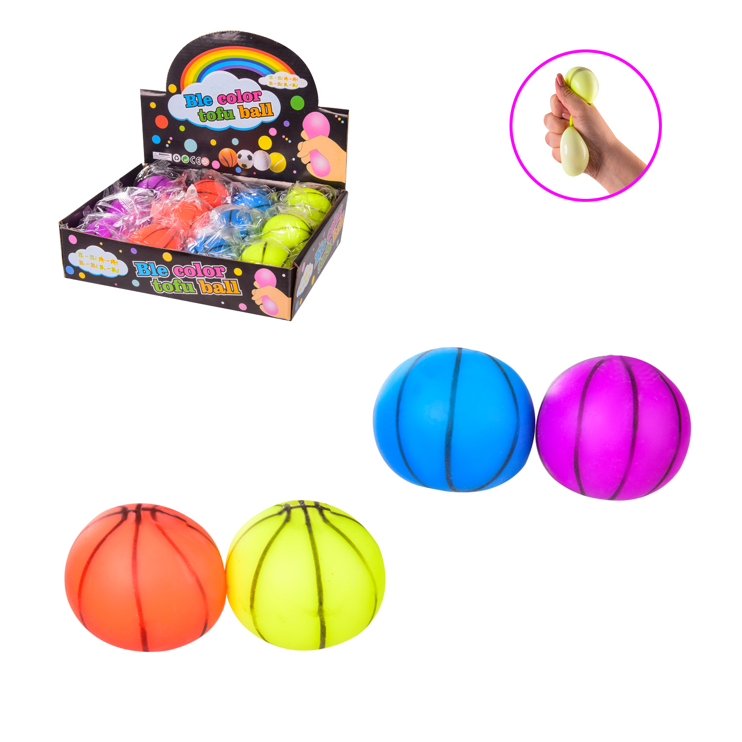 Игрушка антистресс баскетбольный мячик 6см, ЦЕНА ЗА 1ШТ, В УП. 12ШТ, 4 цвета, дисплей боксе упаковки 26*18.5*6см (288шт)