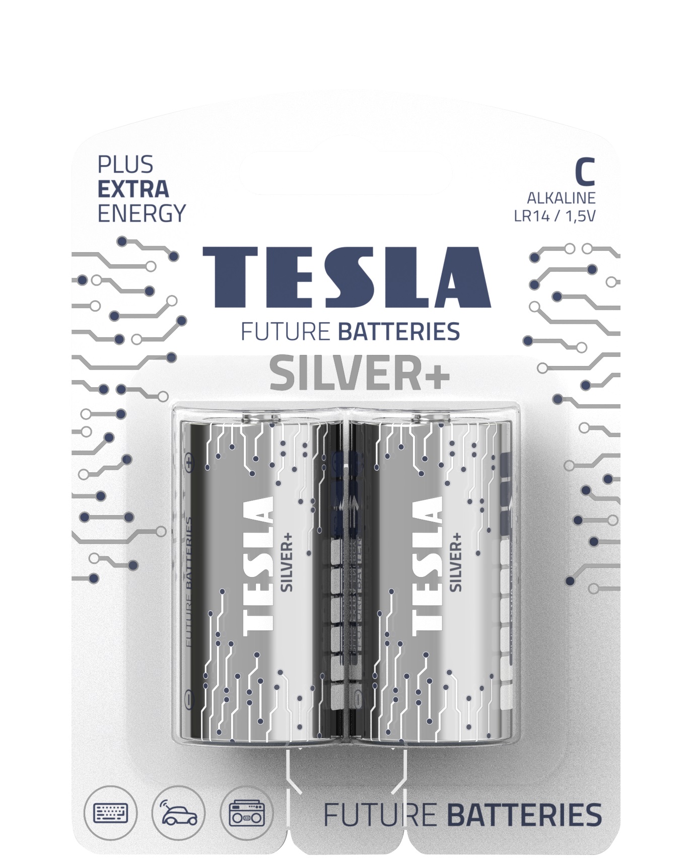 Батарейки, диоксид-марганцевые, щелочные, TESLA BATTERIES C SILVER+ LR14, ЦЕНА ЗА 2ШТ, на планш. 11*8см