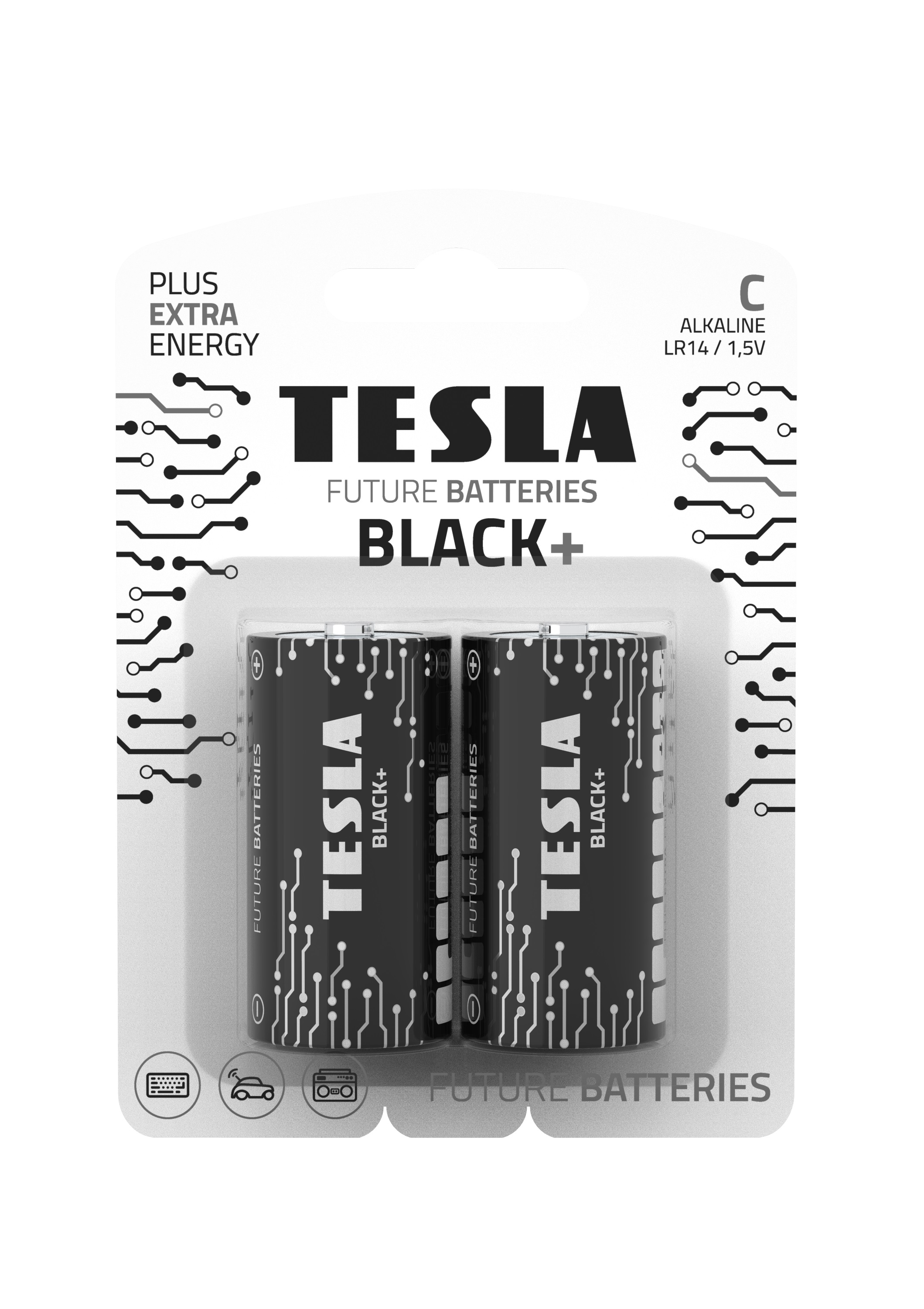 Батарейки, диоксид-марганцевые, щелочные, TESLA BATTERIES C BLACK+ LR14, ЦЕНА ЗА 2ШТ, на планш. 11*8см