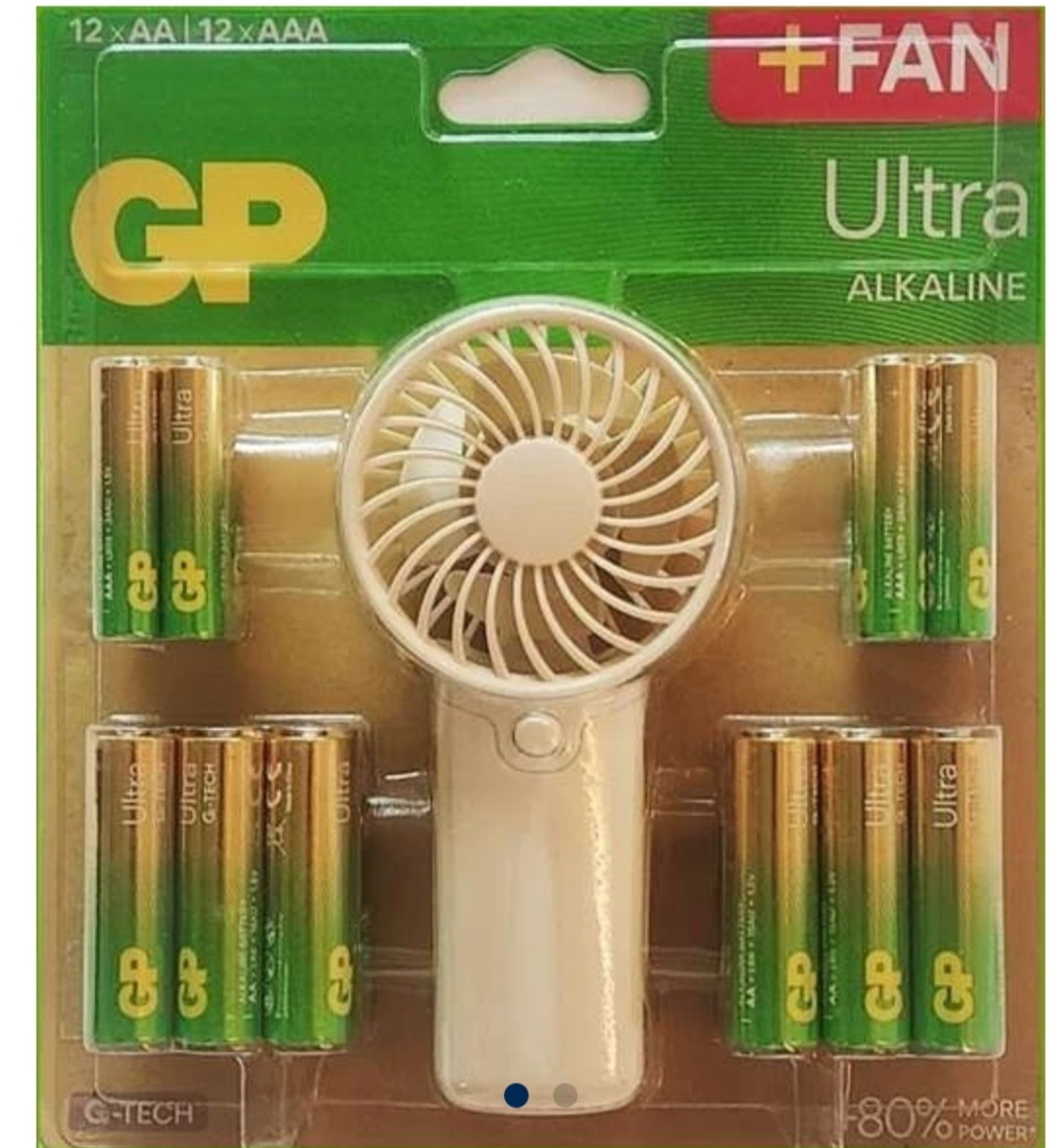 Набор: батарейки GP Ultra Alkaline AA -12шт + AAA -12шт+ вентилятор, планш. 16*15*2см