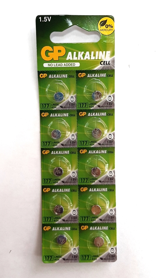 Батарейка GP AG4, 177F-2C10. щелоч. LR626, 1,5В, ЦЕНА ЗА УП. 10ШТ