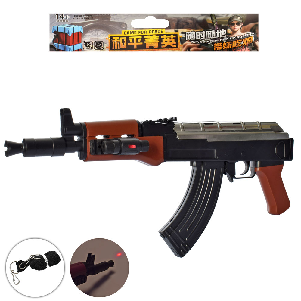 Автомат на пульках, 46см, лазер, бат(табл), пак. 19*51*6см (48шт)