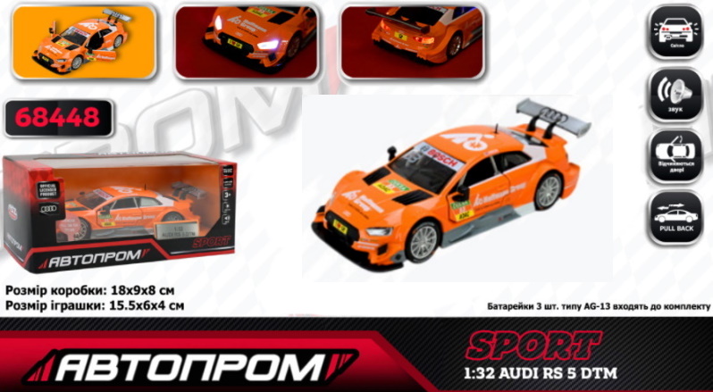 Машина мет. АВТОПРОМ 1:32 Mclaren Senna, бат, свет, звук, откр.дверь, в кор. 18*9*8см (48шт/2)