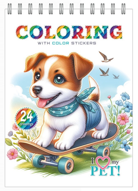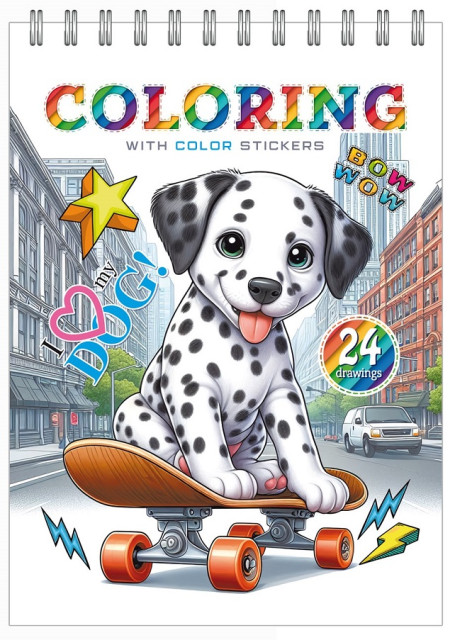 Раскраска с наклейками 14,8 * 21см, 100г, 12 листов, печать 4 + 4. Спираль, ТМ Fresh, Украина