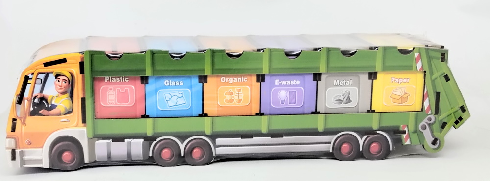 Деревянный сортер комодик "Сортировка мусора: мусоровоз", планш. 39*9*10см, ТМ UBumblebees, Украина
