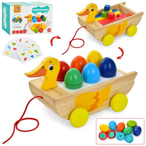 Деревянная игрушка Центр развивающий каталка-уточка на шнурке, фигурки, в кор.25*16*14см (12шт)
