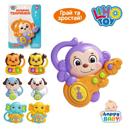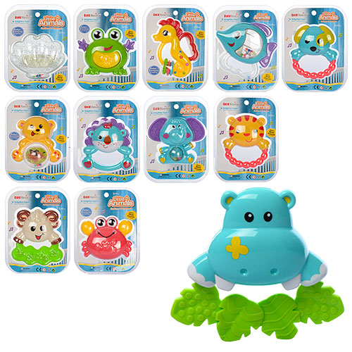 Погремушка животное, 12см, LIMO TOY муз., свет, 4 вида по 2 цв., бат, на планш. 16,5*22,5*2,5см (108шт)