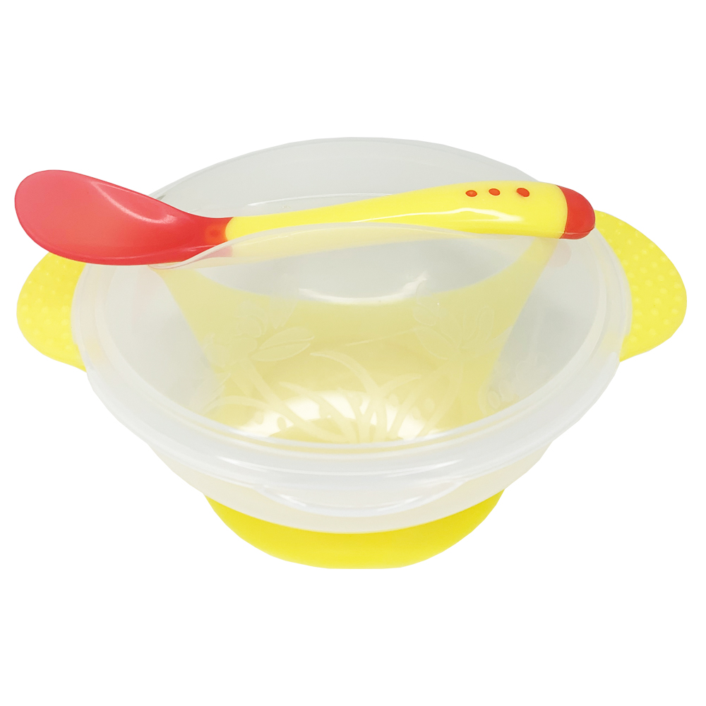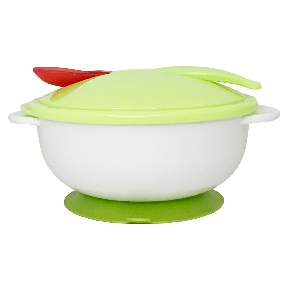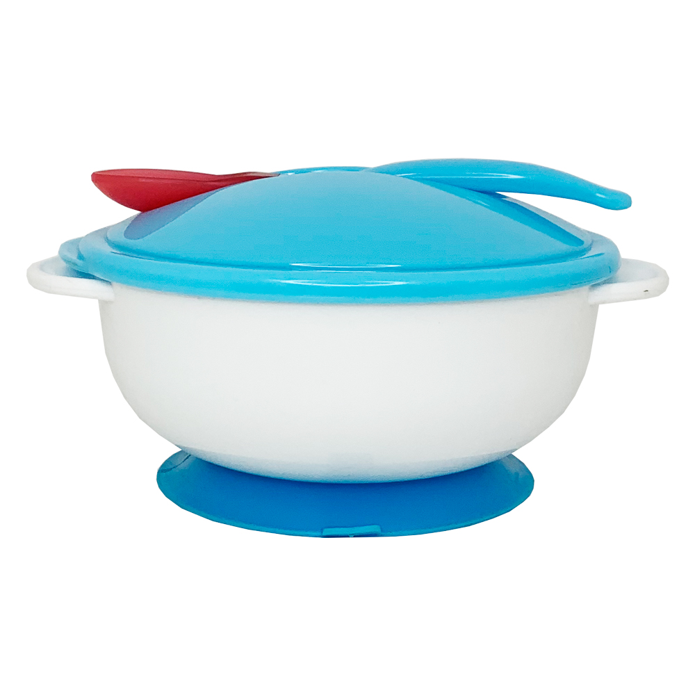 Тарелка на присоске с термоложкой и крышкой (голубая), в пак. 20*15см, ТМ MEGAZayka