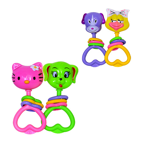 Погремушка 15см, животное/птица, прорезыватель, 6 видов по 2 цвета, в кор. 8,5*18*8см (180шт)