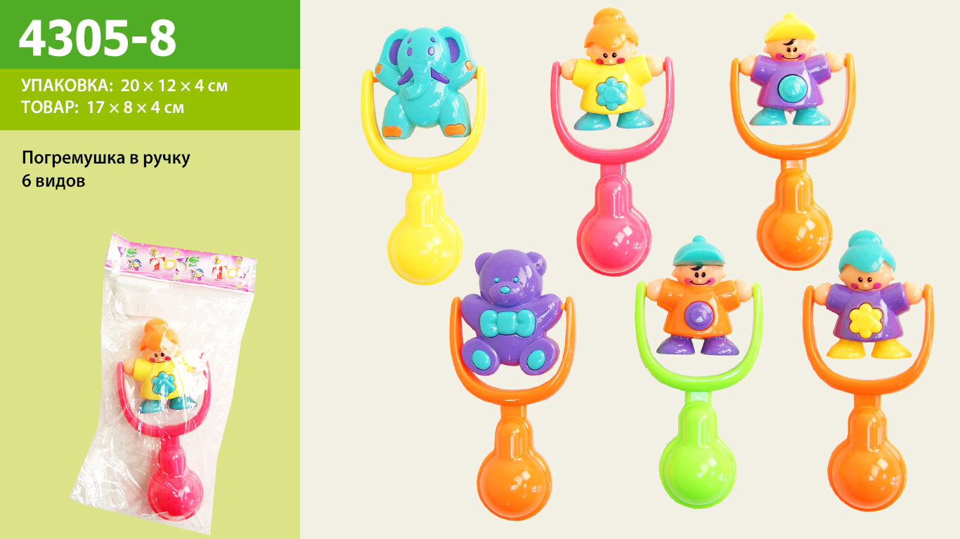 Погремушка в ручку, 4 вида, в пак.16*8см (480шт)