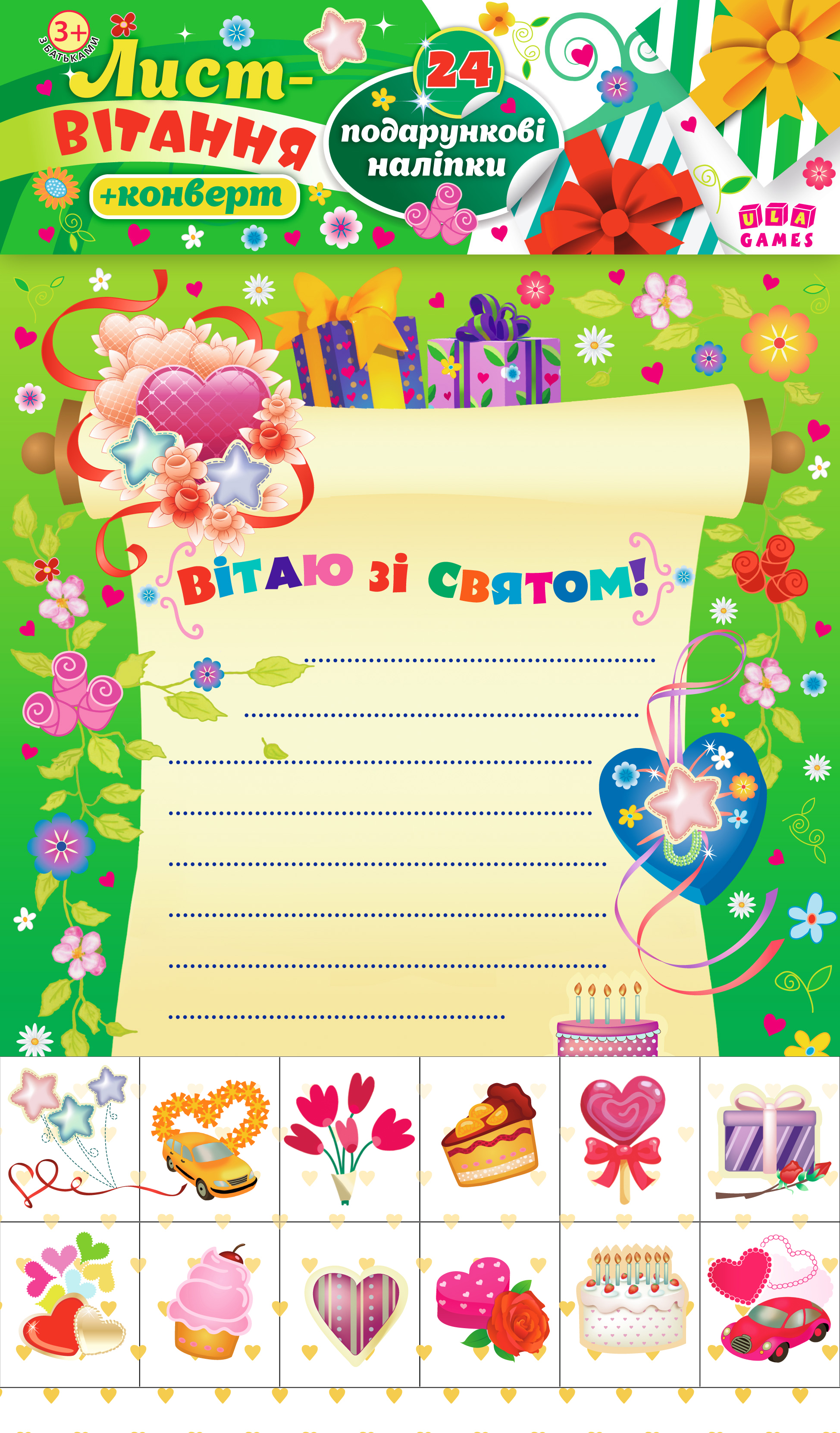 Книга "Лист вітання. Зелений", 24 наклейки, в пак. 24*17см, Украина, ТМ УЛА
