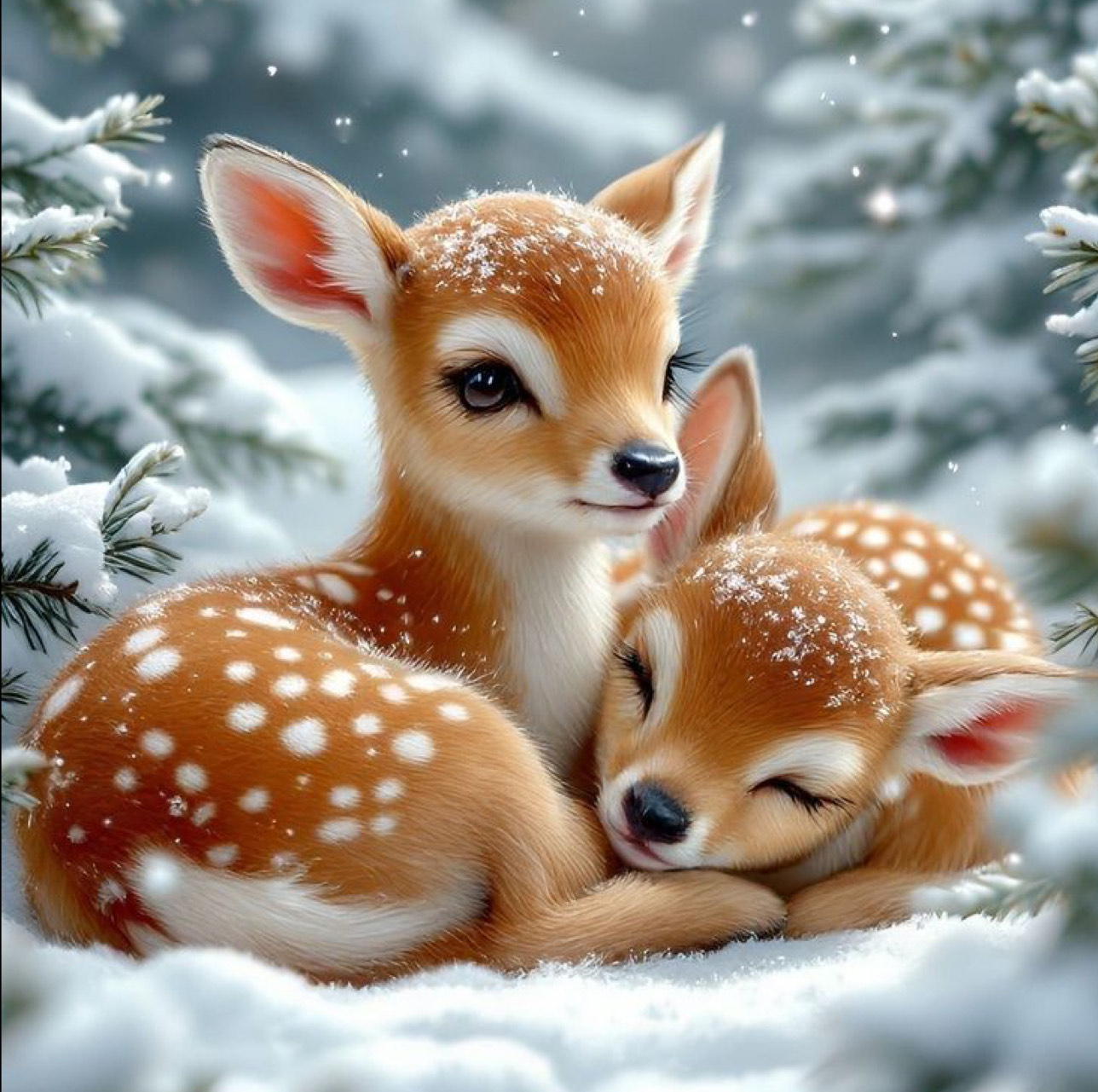 Алмазная мозаика "Лесной уют для оленят", 20*20см, на рамке, кор. 21*21*2,5см, ТМ Dreamtoys