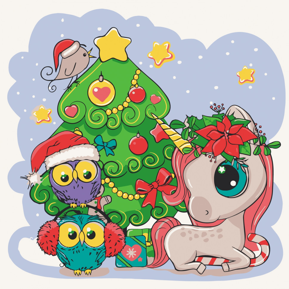 Картина по номерам "Единорожка с елкой" 30*30см, термопакет, ТМ ART Craft, Украина