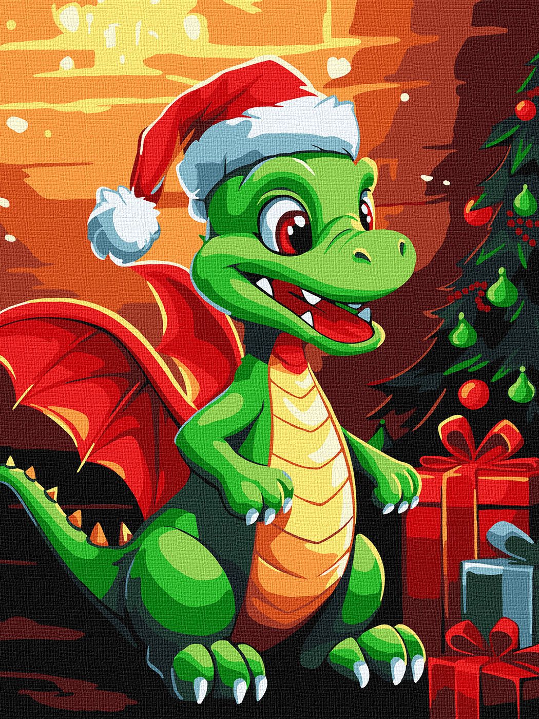 Картина по номерам 7+ "Рождественский дракон" 30х40см, в термопакете, ТМ Идейка, Украина