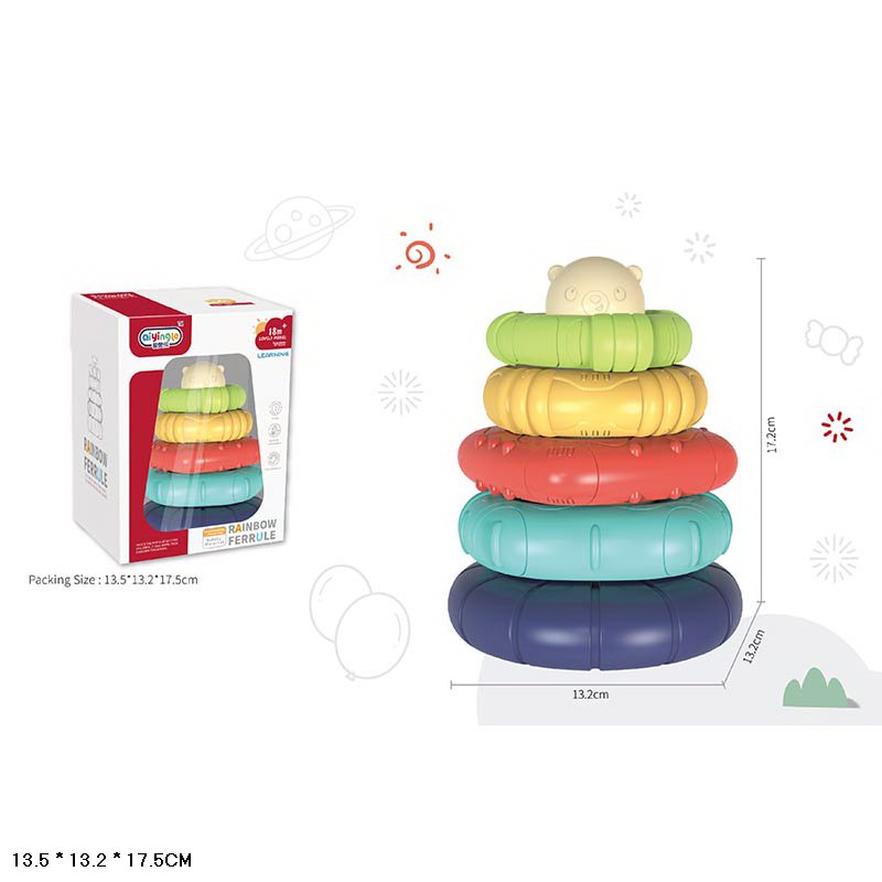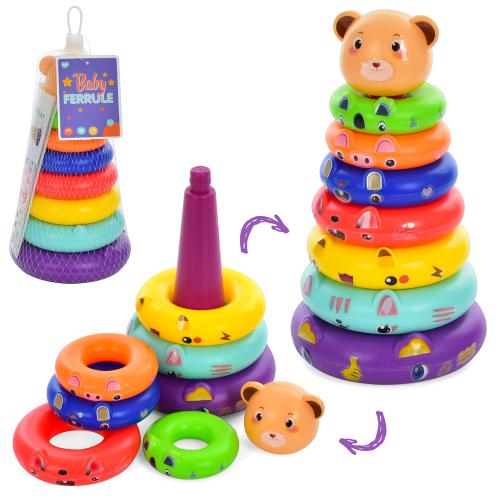 Пирамидка мишка 23см, 7 колец, налипки, в сетке, 12*28*12см (36шт)