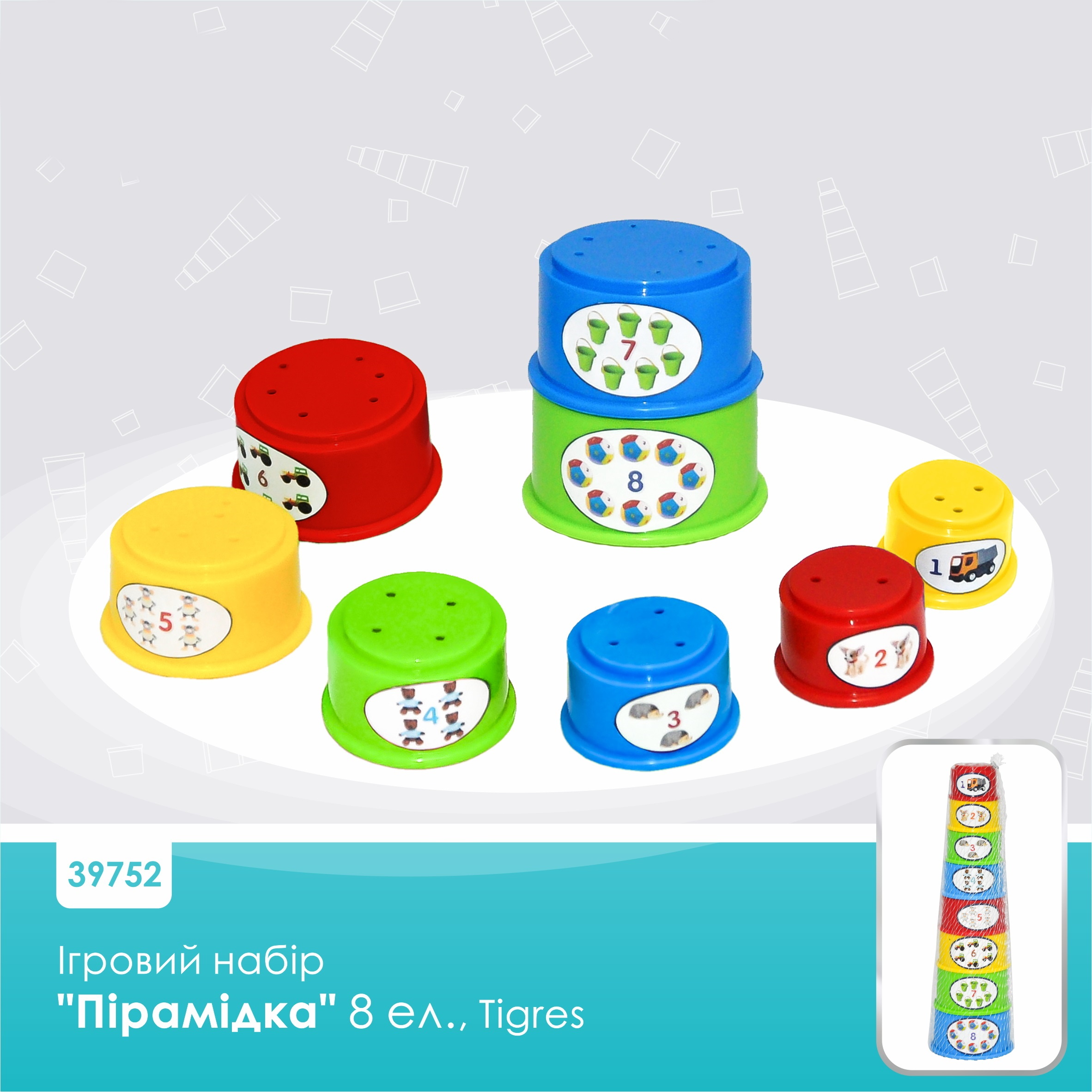 Пирамидка 8 предметов, 18.2*18*10см, сетка, Украина, ТМ Технок (26шт)