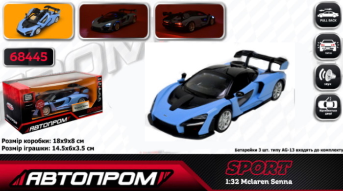 Машина мет. АВТОПРОМ 1:32 Mclaren Senna, бат, свет, звук, откр.дверь, в кор. 18*9*8см (48шт/2)