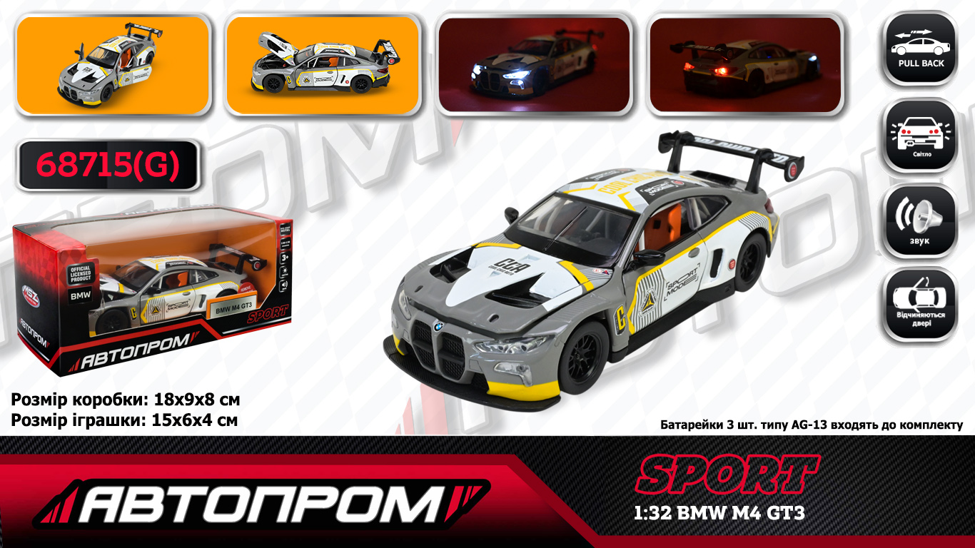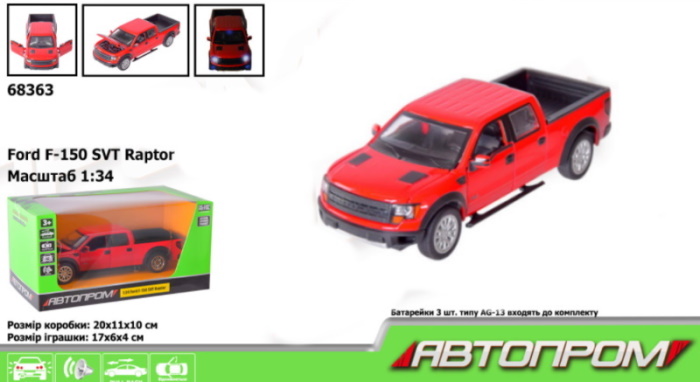 Машина мет. "АВТОПРОМ" 1:32, бат., свет, звук, дверь откр., в кор. 19,5*9,5*9см (36шт)