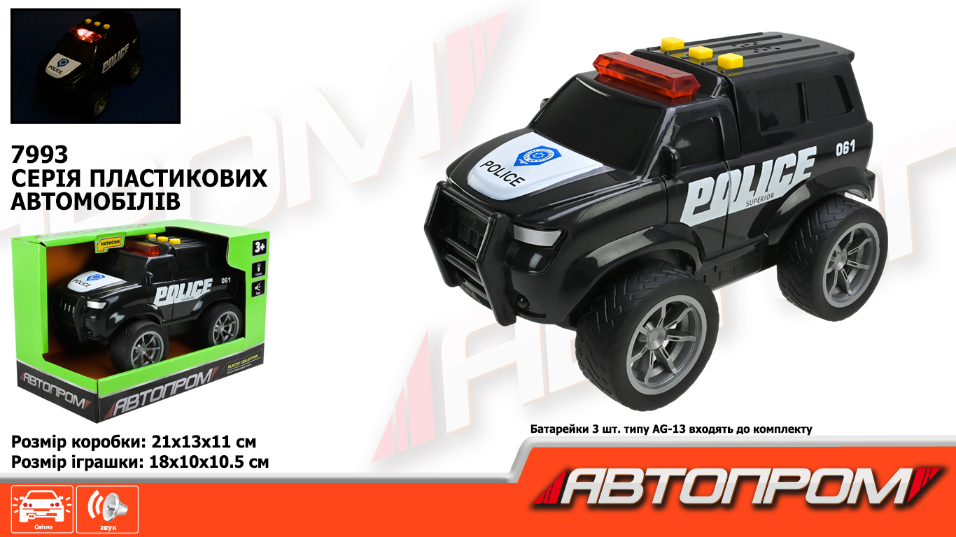 Машина бат. свет, звук, 4 вида, свет, бат., в корр. 25,5*12,7*14,5см (60шт/2)