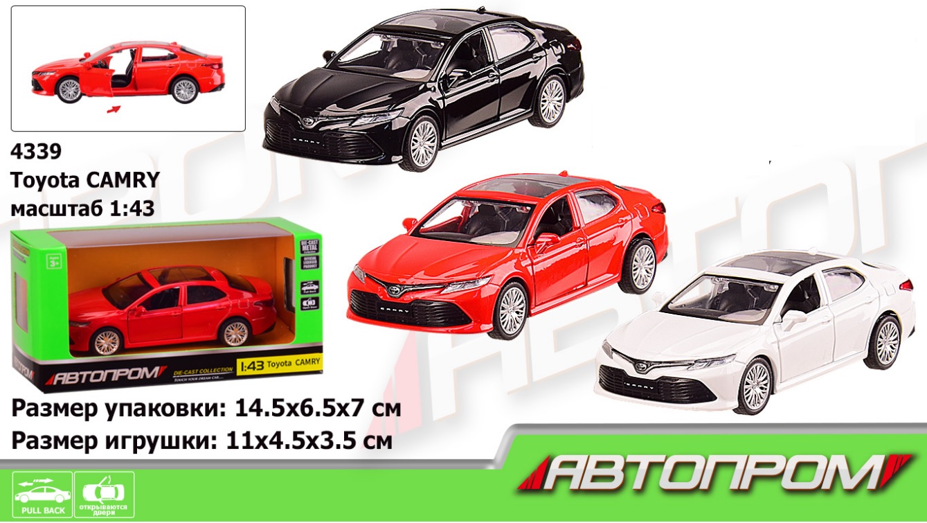 Машина металлическая "АВТОПРОМ", 1:43 Toyota CAMRY, 4 цвета, откр.двери, в кор. 14,5*6,5*7см (96шт/2)