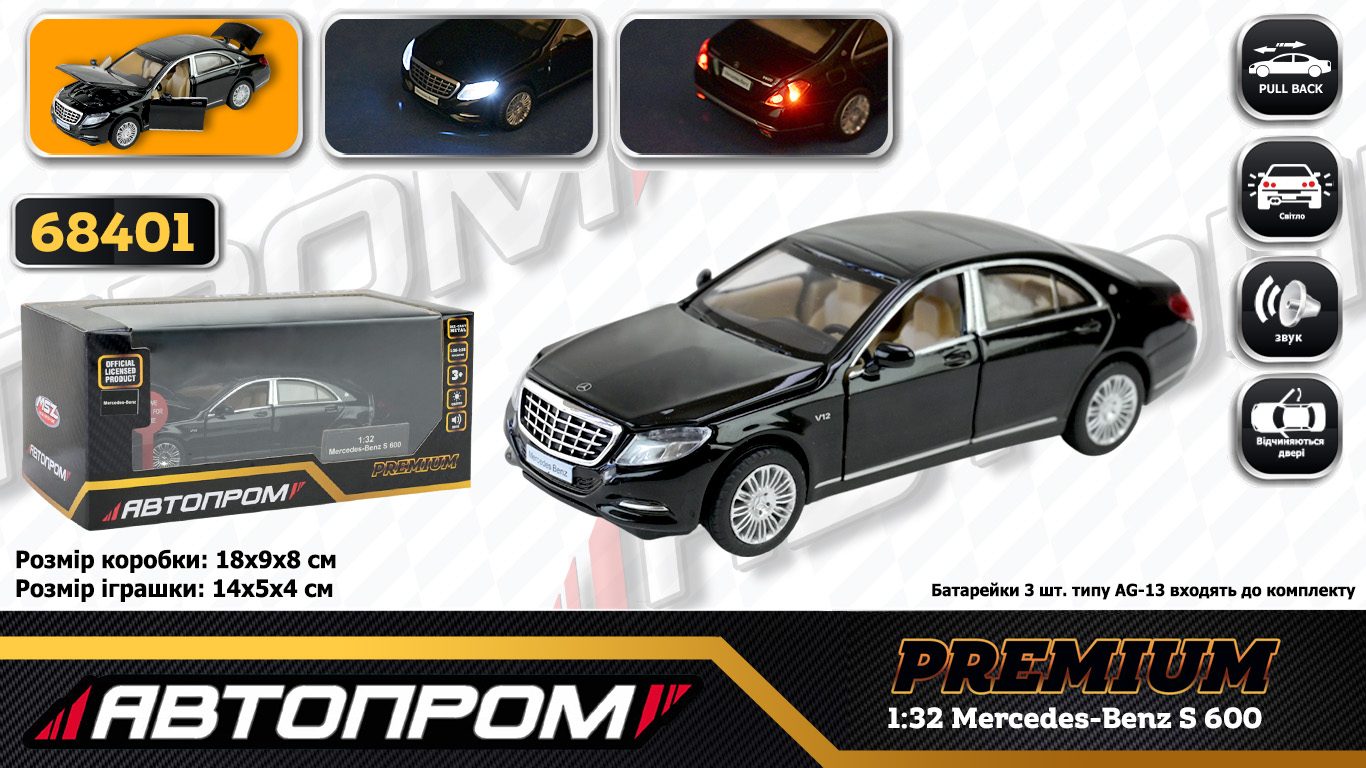 Машина метал., "АВТОПРОМ", 1:32 Mercedes-Benz S 600 2015, бат., свет, звук, откр.двери, в кор. 18*9*8см (48шт/2)